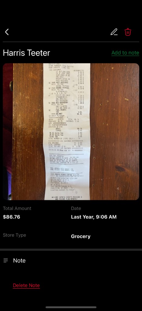 Receipt Details Stored